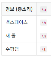 - 위의 예시 말고도 자주 쓰이는 확장 비트열은 \"이고, 이는 " 문자를 출력함. "는 문자열의 시작, 끝을 나타내주는 문자이기에 문자열 내에선 확장 비트열을 사용하지 않는 이상 사용할 수 없음.